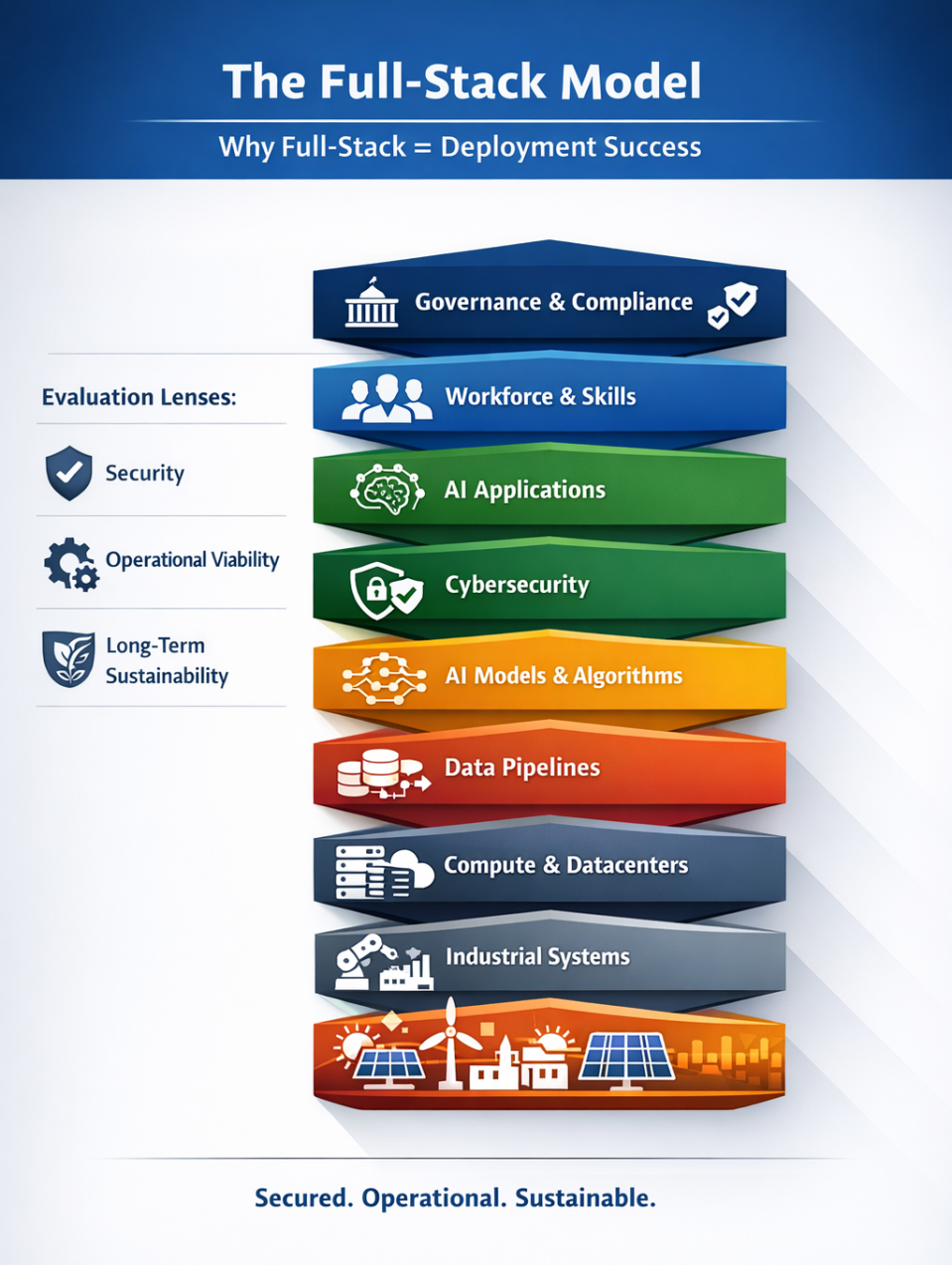 CEBOT approaches AI not as a standalone technology, but as a system that must operate inside real economies, institutions, and infrastructure. The Full-Stack Model reflects how AI succeeds in practice—not in theory.